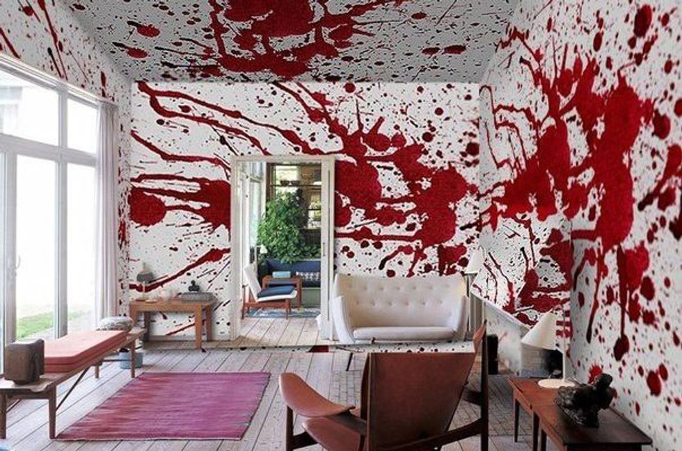 out on the couch, and the zombie is sprawled on the kitchen floor,