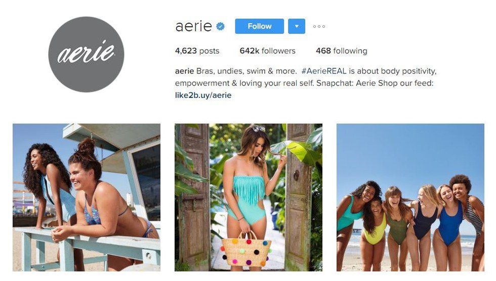 Aerie is an excellent example of an established clothing company with a tremendous amount of power and influence that has embraced the body positive movement by including models with a diverse array of physical appearances in their campaign, and working towards ending the airbrushing of all of their models.