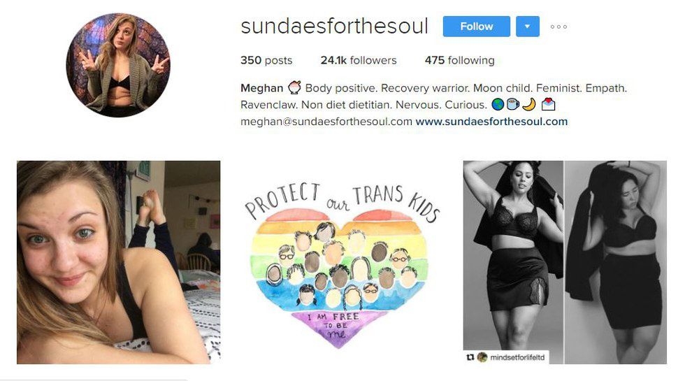 I fell in love with Meghan after diving down the rabbit hole of her Instagram. I see someone who knows exactly what it's like to suffer the hell of an eating disorder, make it through to the other side, and then struggle being on the other side where you're sure as hell better off than you used to be but still not where you want to be. I see someone who wants so desperately for nobody to have to endure what they did; someone who genuinely cares about others. I see someone who will never stop fighting, no matter how hard it is to keep from falling off the road to recovery. I see myself.