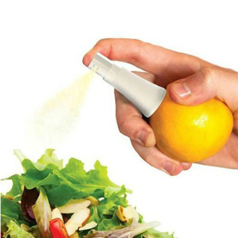 This is one of those ridiculous ones that I mentioned. So here's how this works: you push the sprayer tip in, squeeze the lemon, twist a little, and then spray the right amount of lemon juice onto whatever you want for just $2.18. WHAT A DEAL