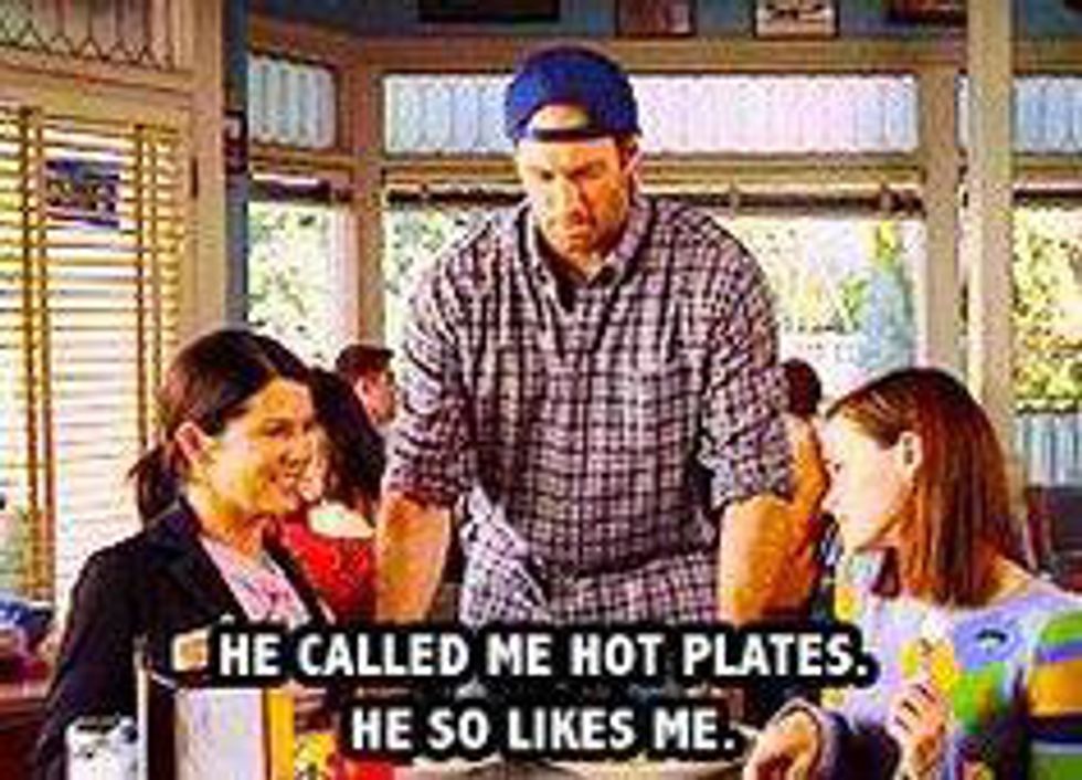 "Hot plates" is only something you say when you like a girl. It has nothing to do with the hot food that was just set in front of them.