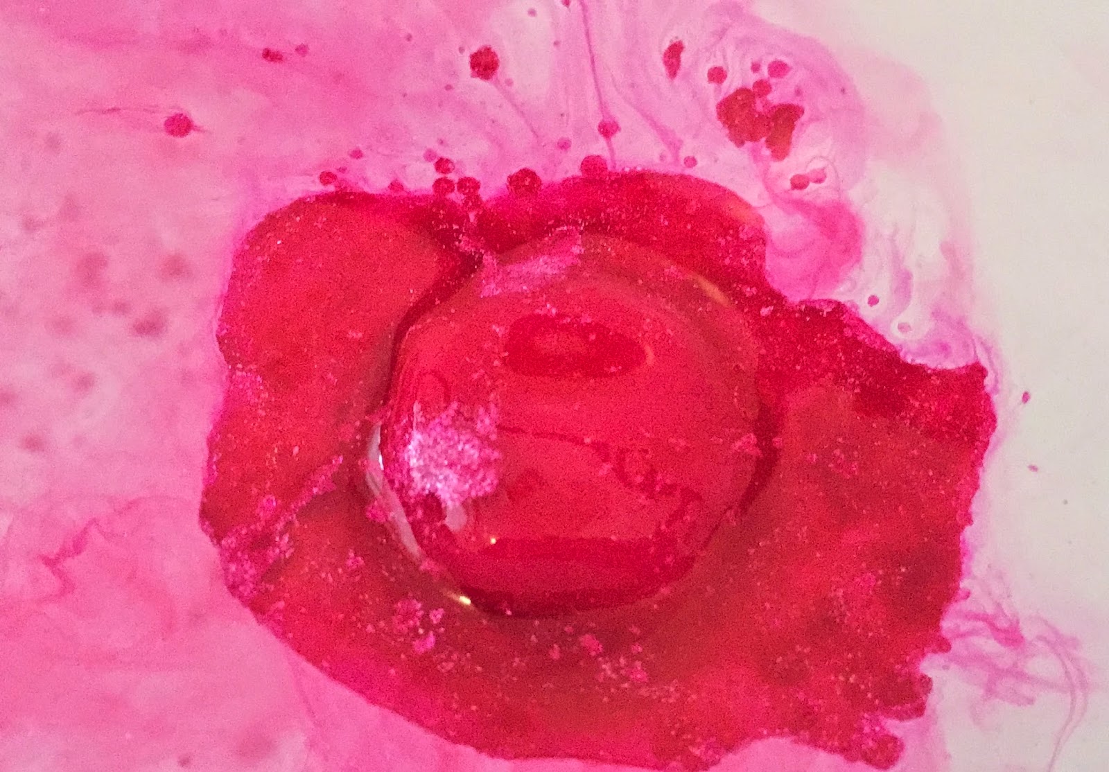 The scent of this vibrant pink bath oil is so intoxicating and so strong! It moisturizes my skin without leaving an oily film on the surface. There are little sparkles in it too, which is just so pretty.
