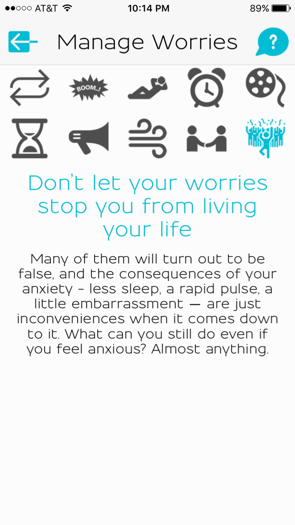 Pacifica is a self-help app for anxiety that focuses on long-term use. It uses the basic ideas of cognitive behavioral therapy to help people manage stress over time. On the app, you set mental health goals, track your mood, physical fitness, and sleep. When you track your mental health through Pacifica long term to see what changes you can make to reduce anxiety and improve your overall mental health.