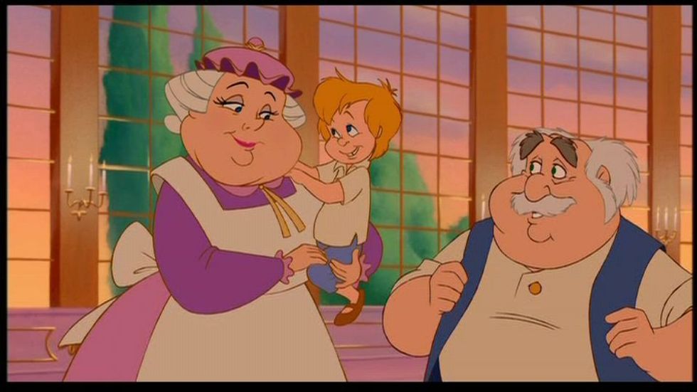 9. Mrs. Potts is Chip's mom, yet the woman we see at the end of the movie seems too old to be a mother of such a young boy.