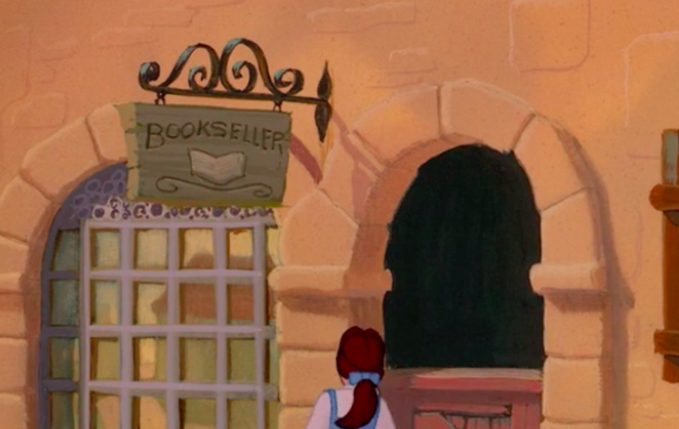 In the original, the book shop was very large considering Belle was one of the only book worms in town. Disney fixed this in the new version by makng the amount of books much smaller. One man even refers to her as the only book worm in town.