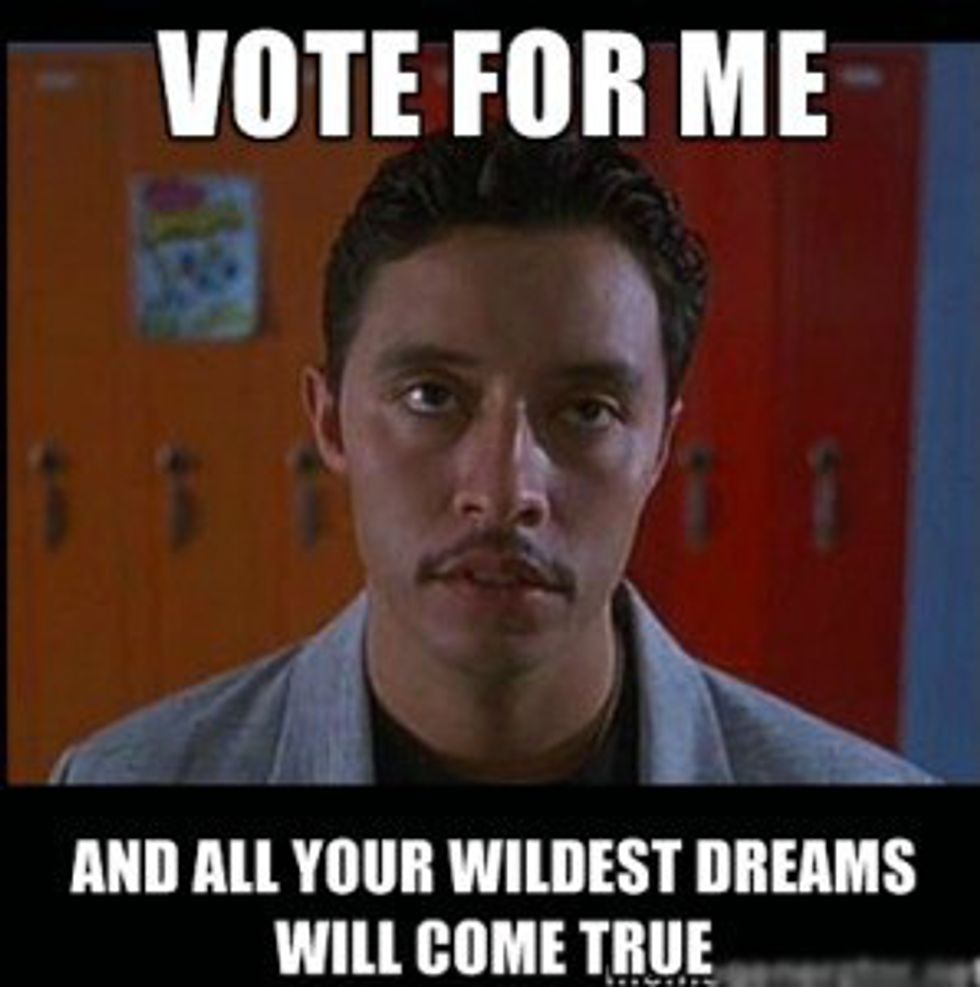 Vote for me. I have sick dance moves and can eat a whole pizza.