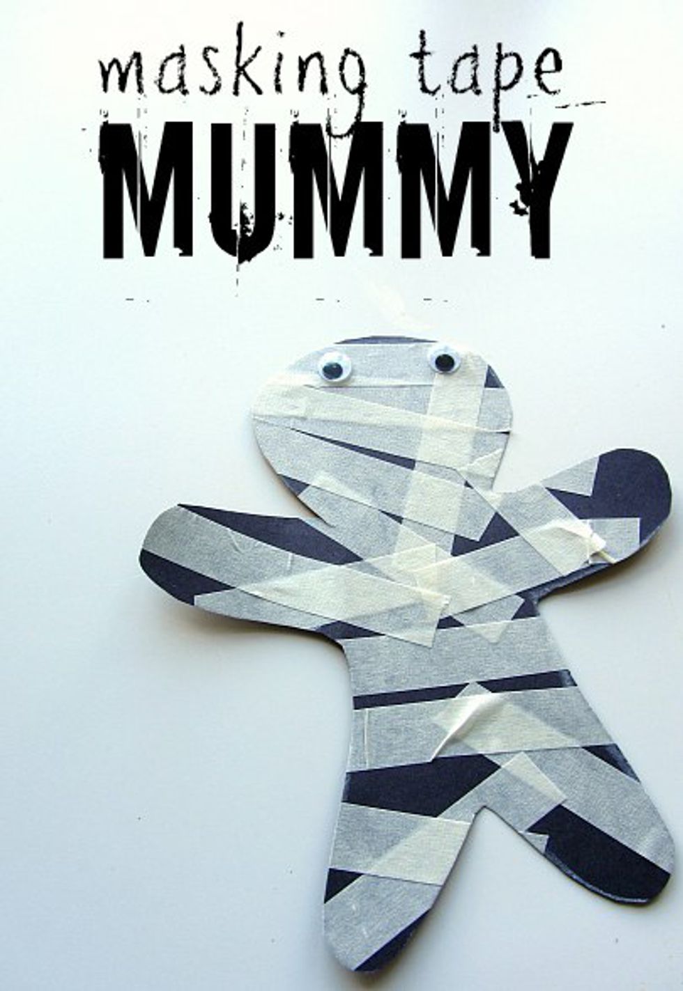 Use black construction paper to cut out a person figure, then wrap your mummy in masking tape and add a face with google eyes or a black marker.