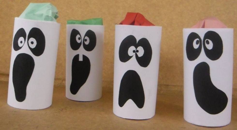 For a fun and upcycling Halloween craft, you can use old toilet paper rolls! Paint your roll green for a zombie, white for a ghost, or orange for a pumpkin and then draw on a face. Such a simple and cute craft to make with friends.