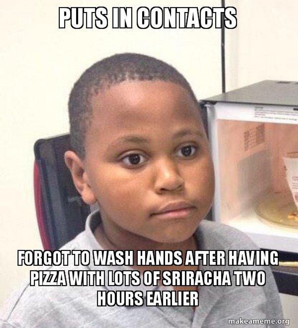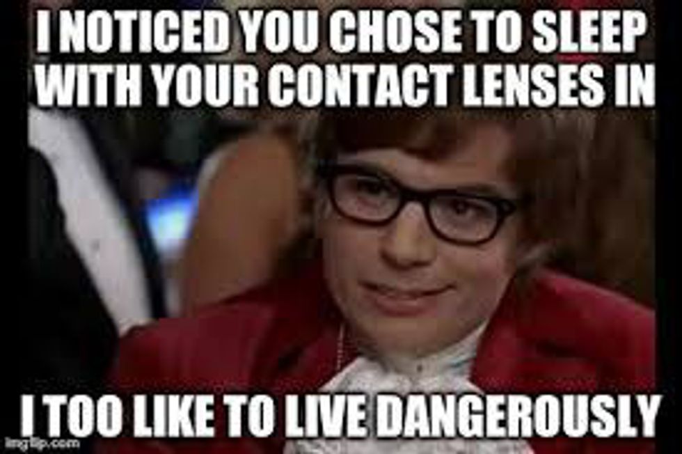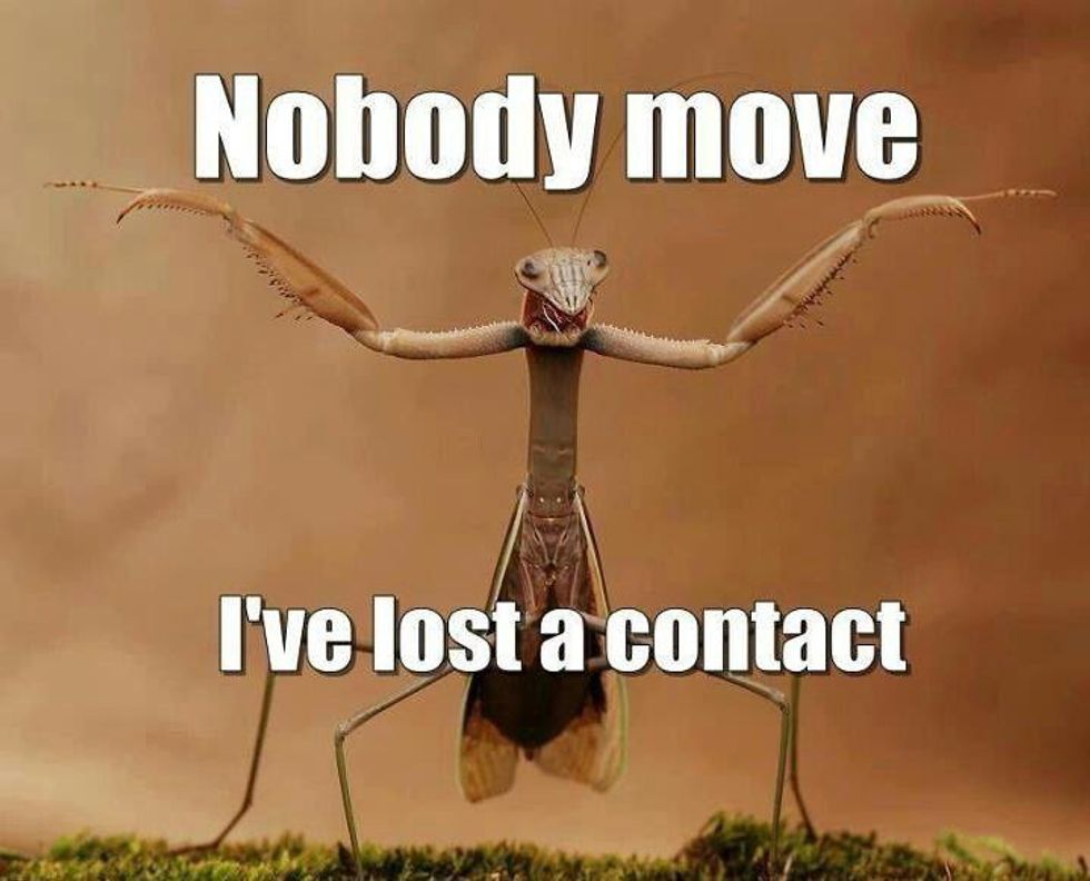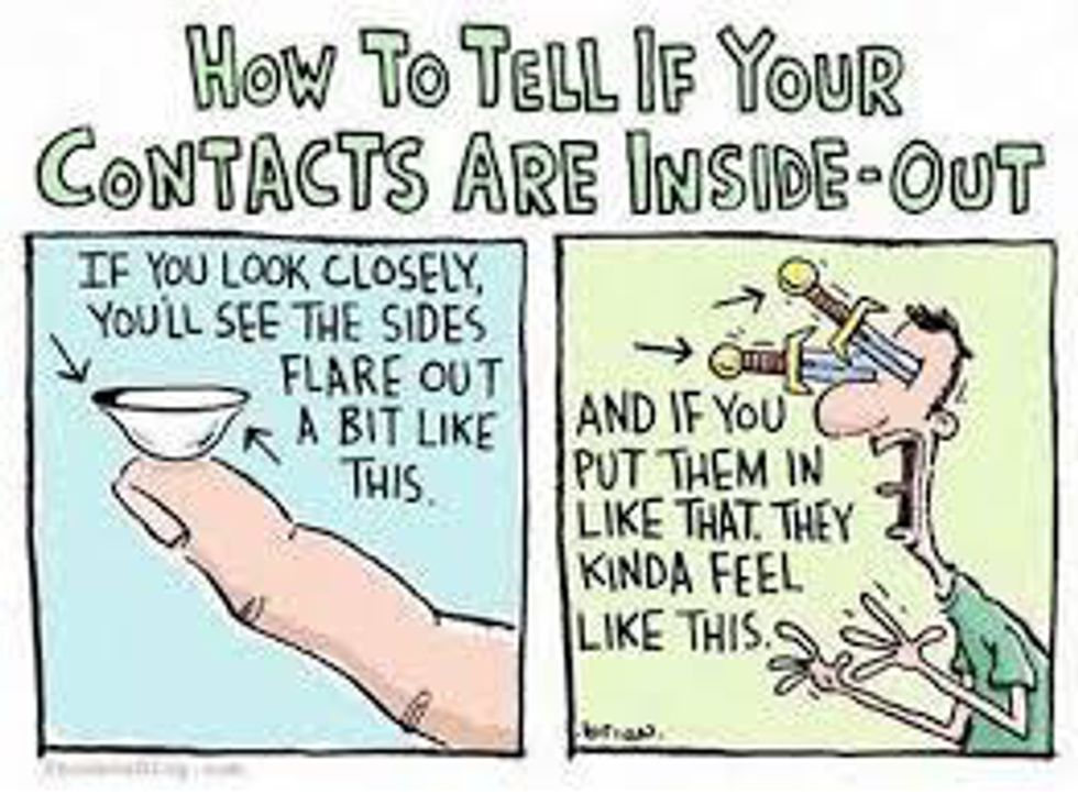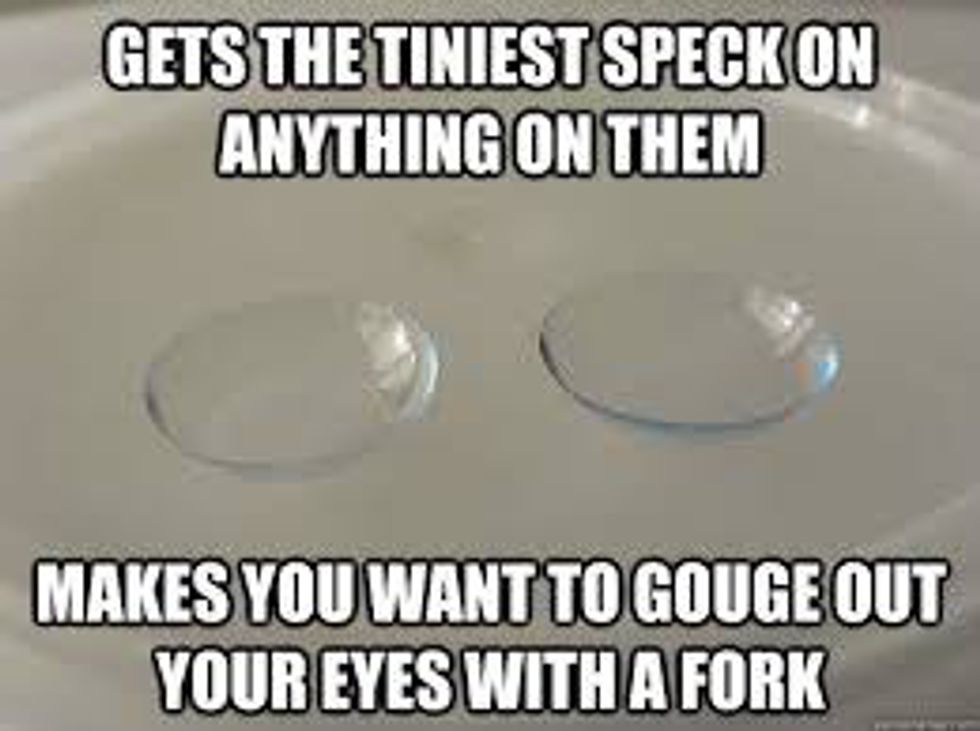 10. Ouch! There is something in my contact. Takes it out, cleans it, puts back in. There is something in my contact!