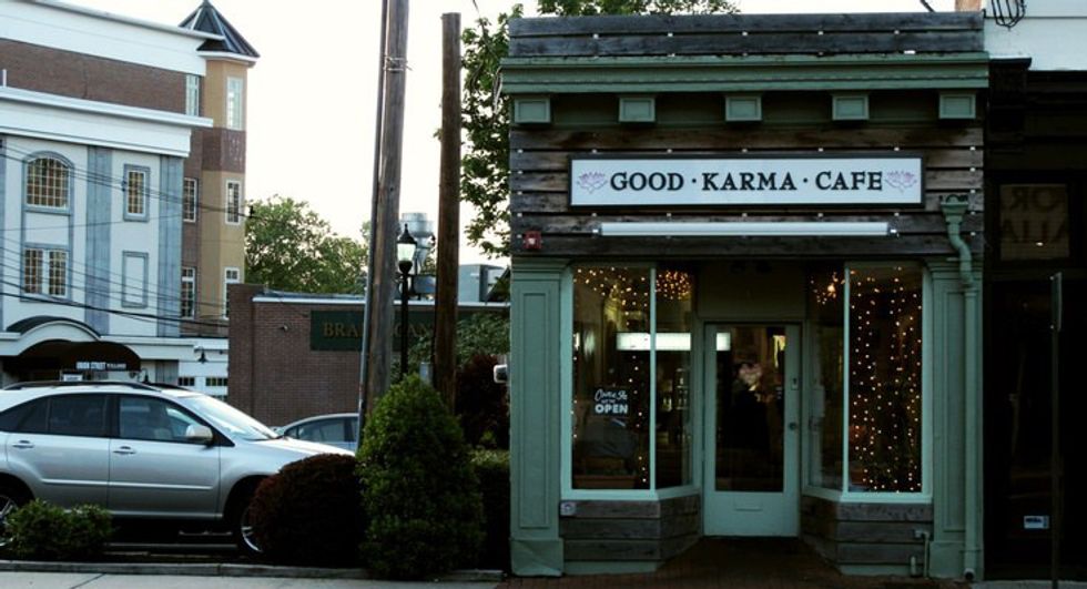 Good Karma is a vegan cafe which features healthy alternatives for meals, such as their version of a Caesar salad, or buffalo soldier sandwich. The cafe is located in the heart of Red Bank, with stores surrounding you, and the bay only a few blocks away.