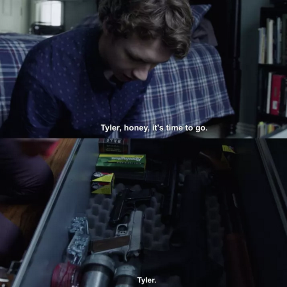 In several scenes of the last 2 episodes of the season, it is made known that Alex Standall is in the hospital in the ICU with a believed self-inflicted gunshot wound. As it would make sense that Alex may attempt suicide due to his very strict father, bullying at school, and how guilty he feels about Hannah's death, there are some who believe otherwise. A final scene shows Tyler covering up his gun stash in his room and then taking down a picture of Alex that he has hung up next to pictures of everyone else who is on the tapes. So could Alex's attempted suicide be faked and actually be the doing of Tyler?