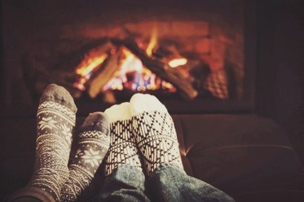 Cuddling by the fire, wearing fuzzy socks and watching some Netflix of course!