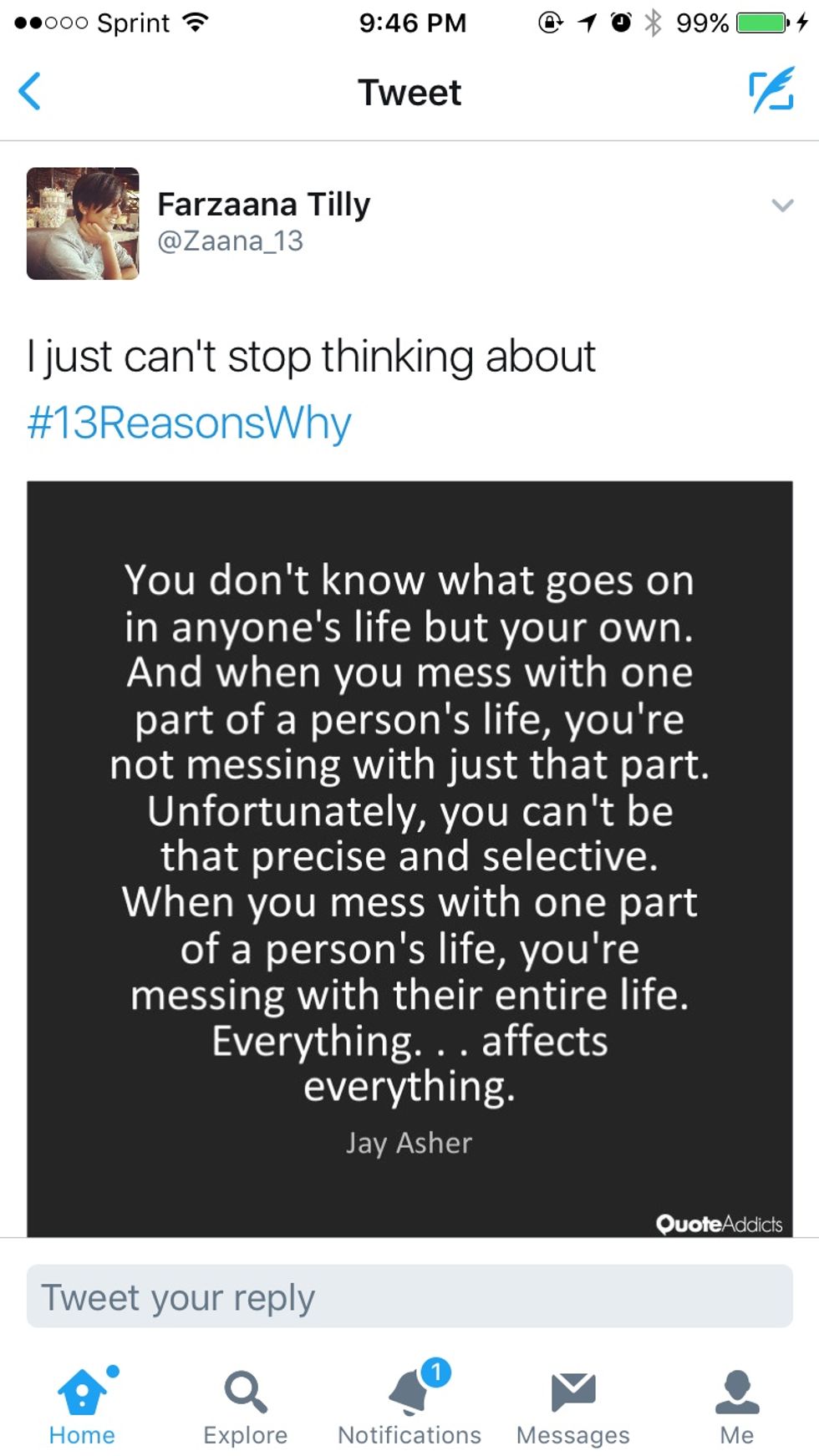 "no one knows... for certain how much impact they have on the lives of other people. #13ReasonsWhy"