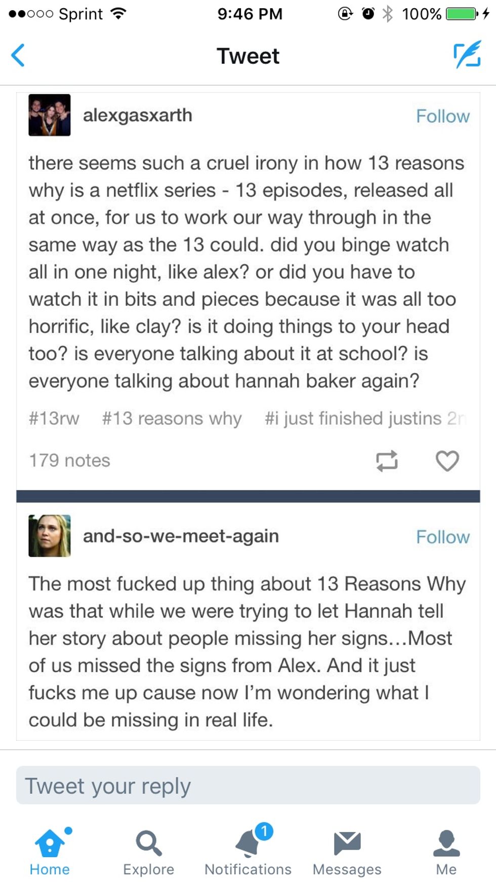 "#13ReasonsWhy shows us if you love or care for someone tell them before its too late."
