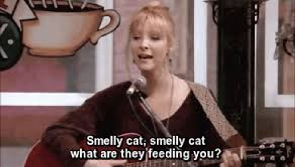 It remains a mystery what Smelly Cat is being fed. This song appears in many episodes of the show and it so very catchy, that you can't help but sing along when you hear it.