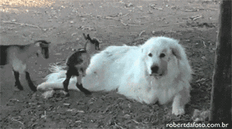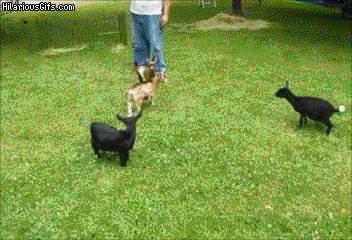 A heard of baby goats taking a dog means instant friendship in my opinion.