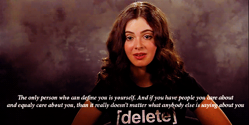If you think that other people can define you, Vanessa Marano is here to tell you that you are wrong. If you're being overly critical of yourself, just stop. If you don't like who you are becoming, change. Be a better friend. Do better at whatever it is you are working on. Don't be controlled by what other people say about you. Just be yourself, and be okay with it.