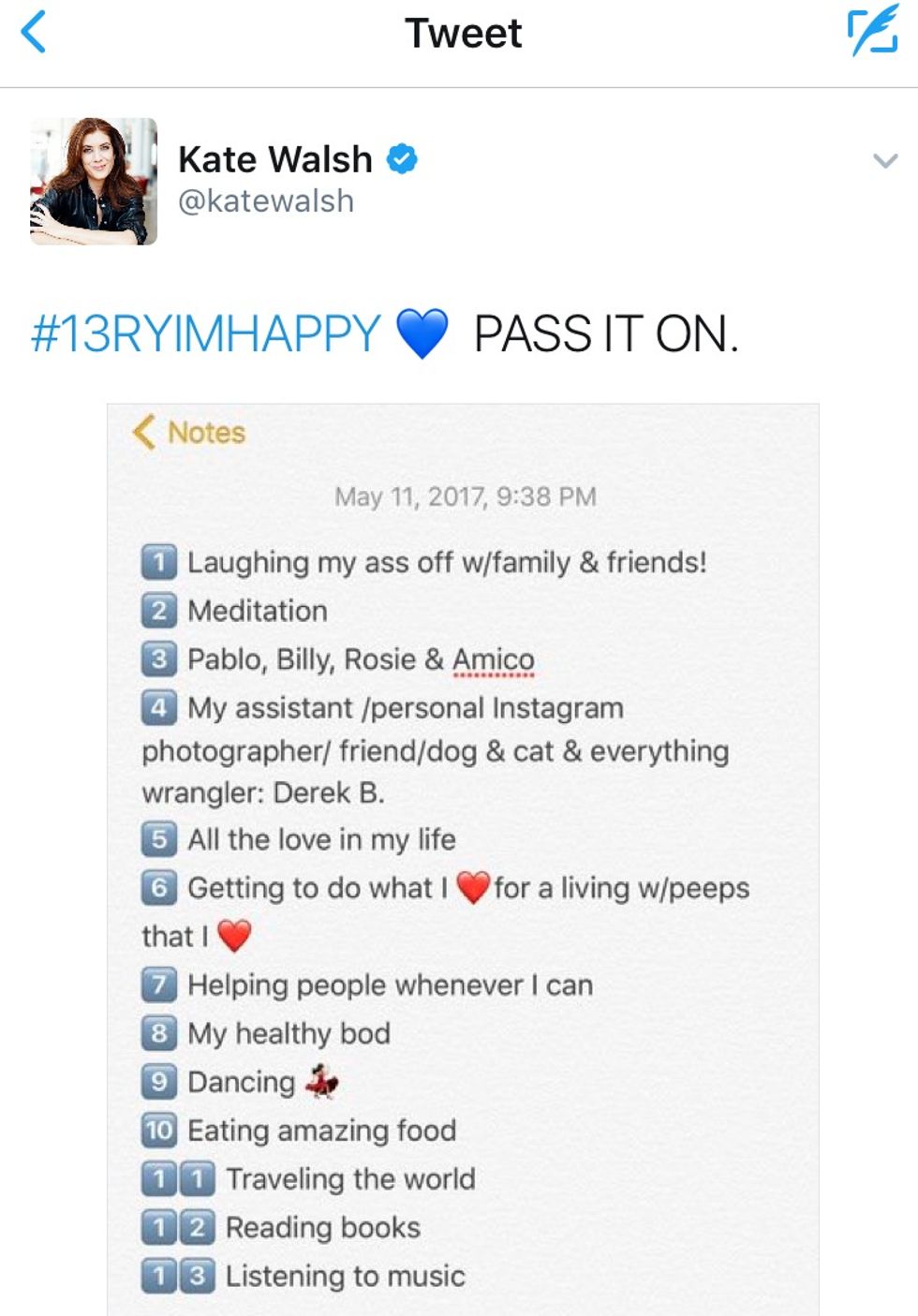 In light of that, 13 Reasons Why star, Kate Walsh - who brilliantly portrays Hannah's grieving mother - recently tweeted a personal note with the hashtag #13RYIMHAPPY and has encouraged others to pass it on and spread the positivity. So, while I can't speak for everyone on reasons they should be happy, I can share with you 13 reasons why I am happy! And, hopefully, this will get you to reflect on and appreciate the good things in your life!