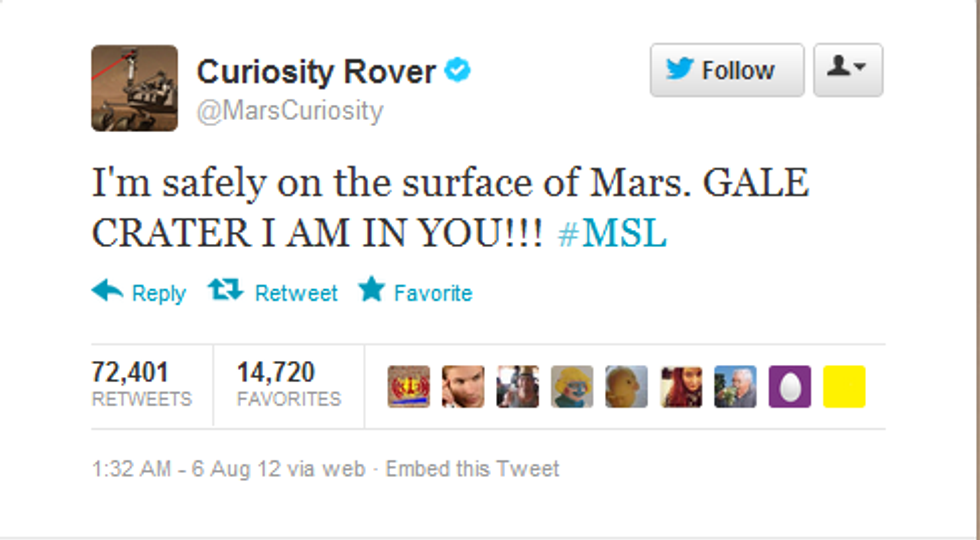 If you don't follow the Mars rover on twitter, then I don't know what you're doing with your life. I never thought I would get so excited to read what a piece of (adorable) machinery is doing. I mean, it tweeted about