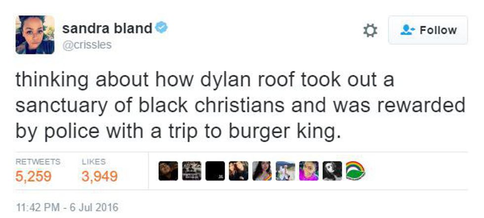 Dylan Roof admitted that he had hopes of stirring up a race war but the police officers that were there that day decided he had a right to life and fast food. Why can't that be the story of Alton Sterling or Philando Castile today?