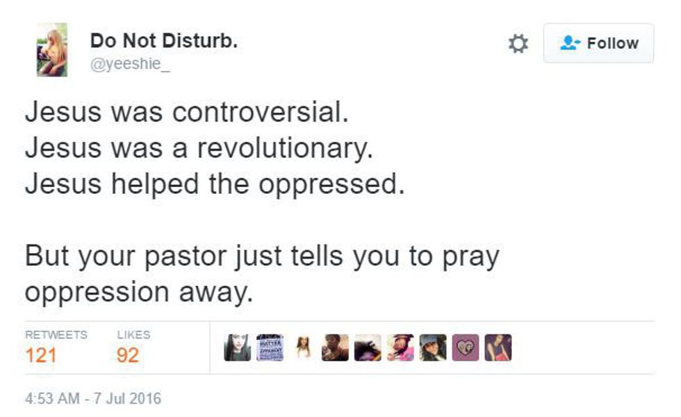 For black Christians, our faith plays a role in all of this. Oppression can't be wished away but action must be taken. Be wary of ministers who don't promote things like social justice or faith through works.