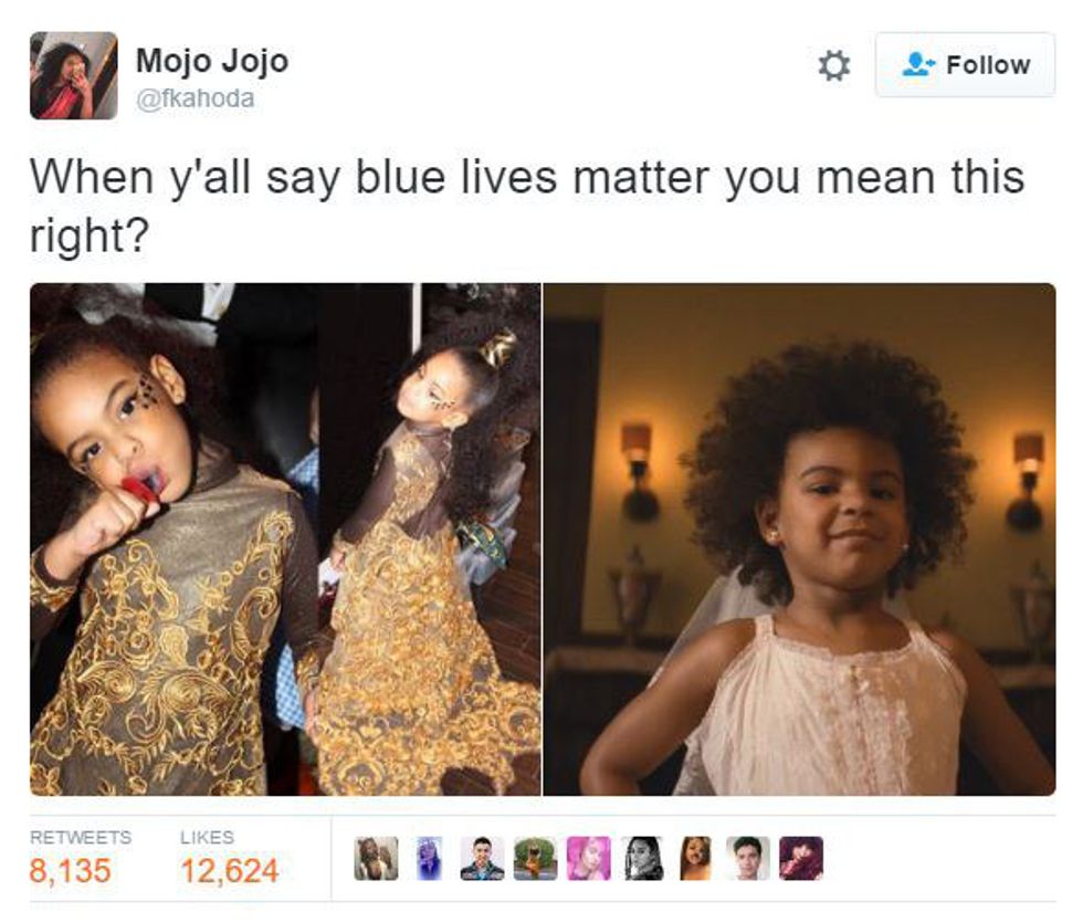 Oh, blue lives matter? I thought all lives matter? Because this movement is clearly a joke, enjoy these cute pictures of Blue Ivy.