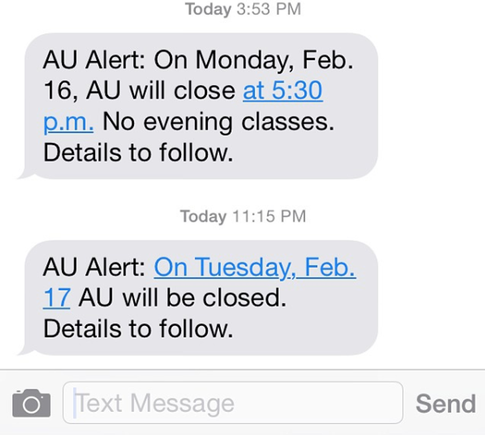 Even if it only snows for 10 minutes around 4 a.m. -- American University completely shuts down in the winter.