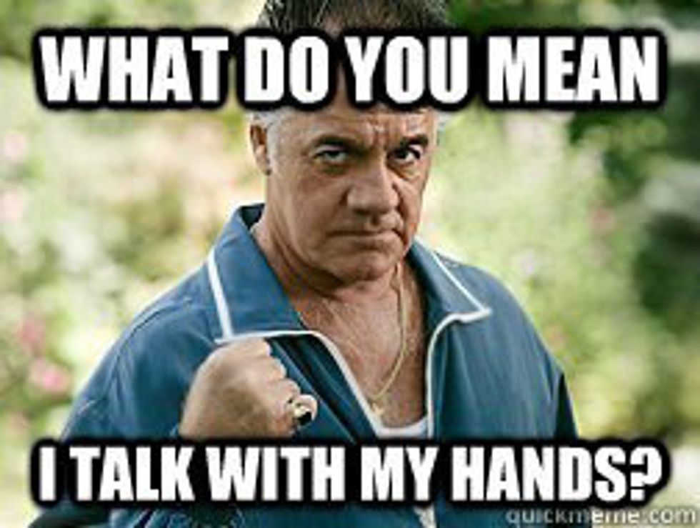 I often times get called out for doing this myself. We always use our hands to back up what were saying. When we’re talking, our hands can’t just sit at our sides or in our laps, they have to be moving while we’re telling a story or having a conversation with someone.