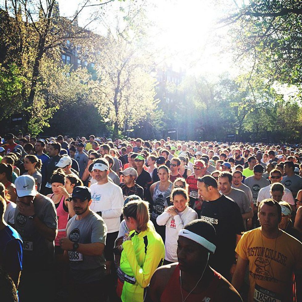 What's up, fellow runners? Whoa! There are so many of us! I will be basically staring at your butts for the rest of the race, but for right now, I am pretty content being packed like sardines. Cue the anticlimactic feelings.