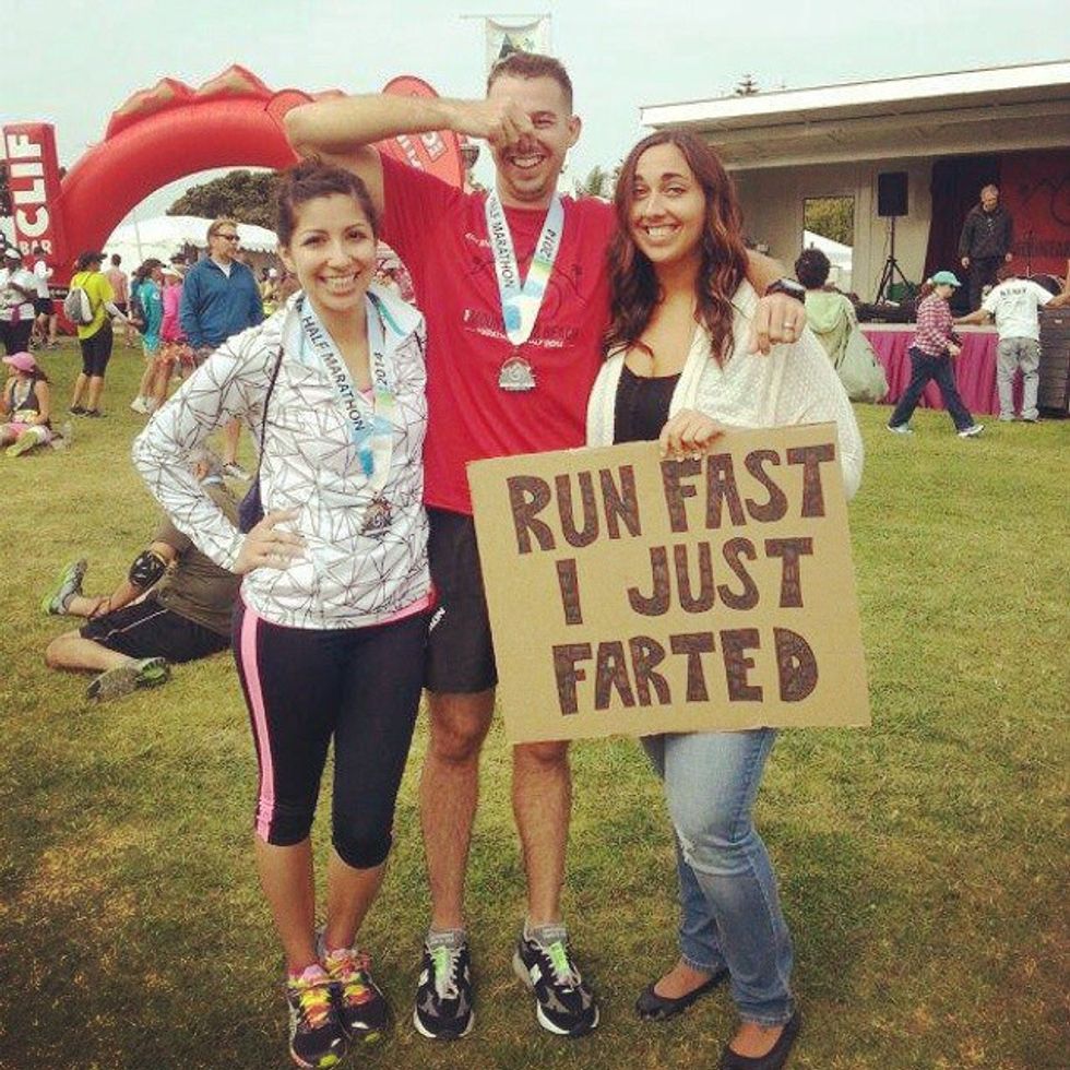 Okay, you feel it now. The farts are coming and you know that there is a chance that one more fart could possibly not be as airy. The runner trots are coming. Oh, look a Port-a-Potty. Yes!! You blast with excitement and do your business. But then you still have a few miles to go. And stopping and trying to get back into running is literally the hardest thing to do. But you got this!