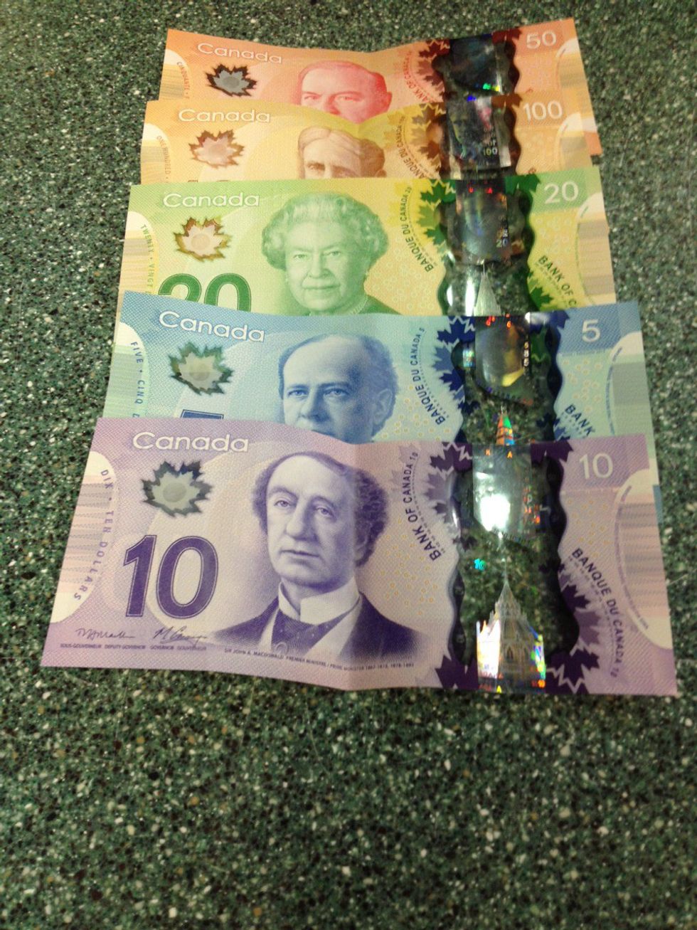 Value of the dollar aside (sorry, Canada, the Canadian dollar is only worth about 75% of the American dollar right now) -- Canadian money is amazing. For one thing, it doesn't get as grungy and grimy as American money does, because it is made from a polymer rather than paper. Plus, different colors denote different bill values, so they're much easier to tell apart just at a glance.