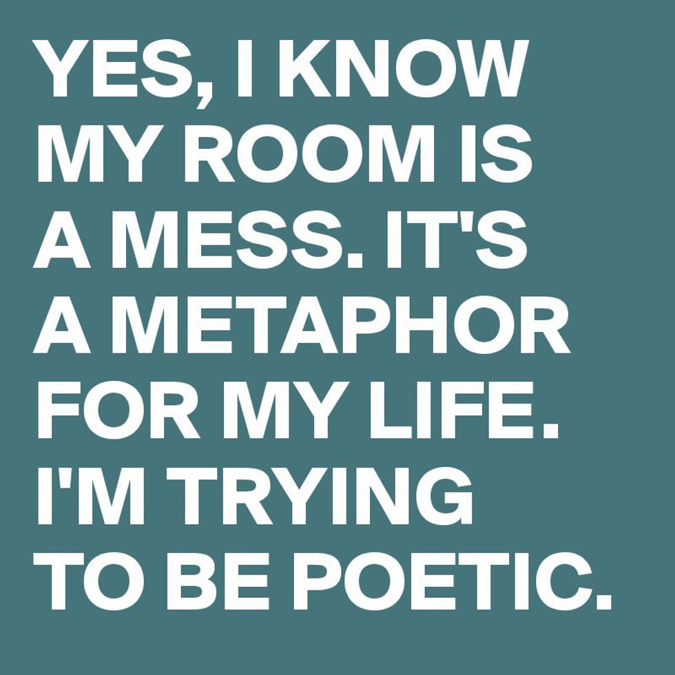 To the naked eye, one might see me as a control freak with a Type A personality. I don't deny either of those things, but I do have a secret. A dark side. On the outside, I'm a composed, put together, eloquent person. On the inside (specifically, the inside of my bedroom), I'm an absolute mess. Here are some things you may be able to relate to if you too are a walking oxymoron.