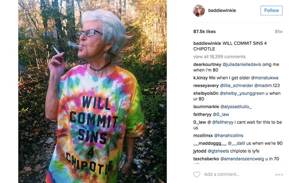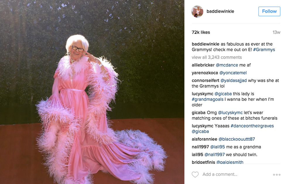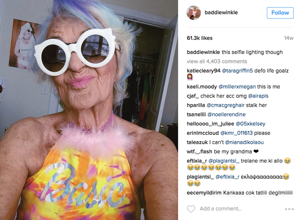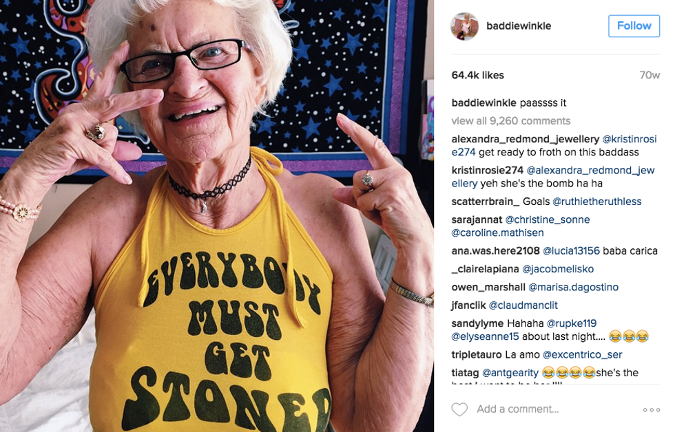 Baddie Winkle (born Helen Ruth Van Winkle) is an Internet sensation known for her funky outfits, liberal views, and generally fun persona. Doesn't sound too out of the ordinary in this day and age, but did I mention she's 87? Basically, we can all hope to be something like Baddie when we grow up, and there's a lot we can learn from Baddie.