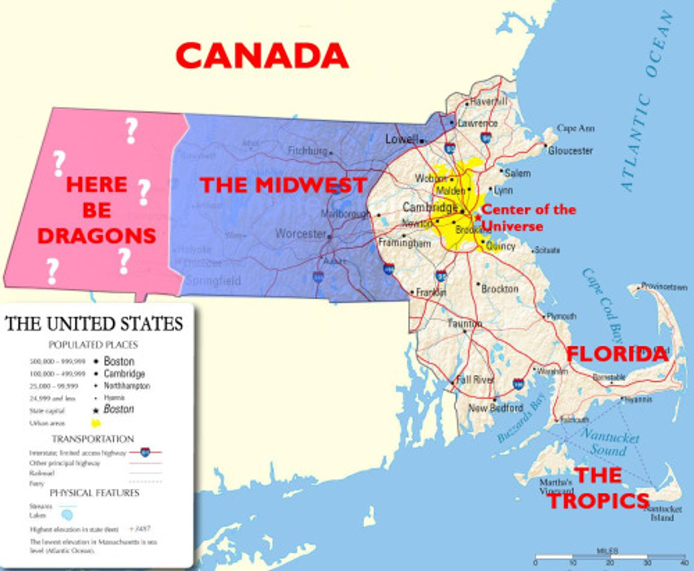 People will actually completely ignore you, or even correct you, if you try to explain that not all of Massachusetts is Boston.
