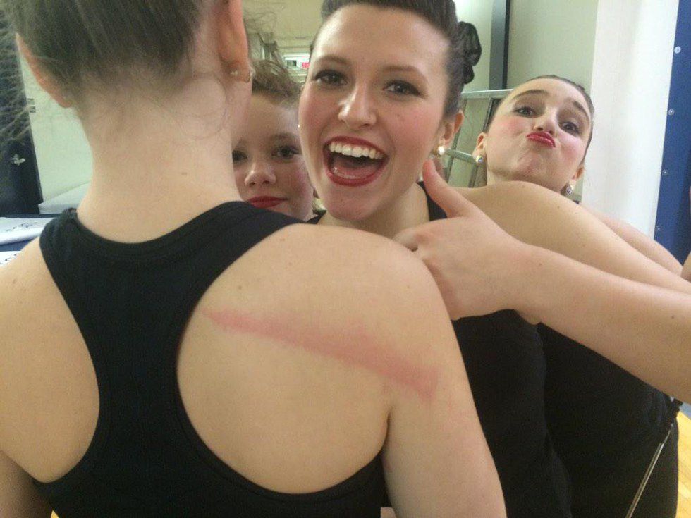 "I’m not sure where all these bruises came from." Twirlers are also able to figure out which trick they were practicing by the placement of a bruise on their body. Darn you elbow pops.