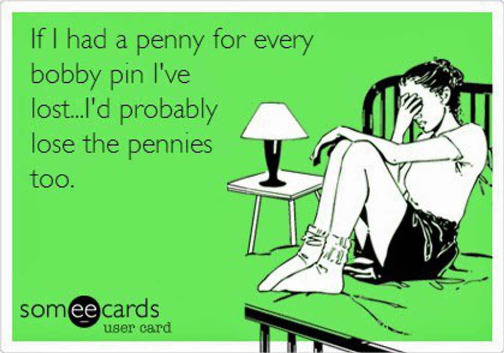 Pencils? Yep I've lost those. Cute hair accessories? Those easily disappear. Small animals? Those can easily get lost in the mess that grows out of my head. And bobby pins? Not only do I need 60 of them, I will lose 72 of them in my hair too.
