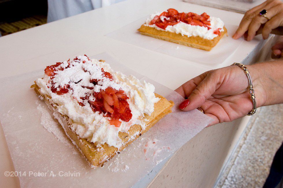Piled high with whipped cream, the fluffy waffles they sell at the fair are a great treat for any time of the day.