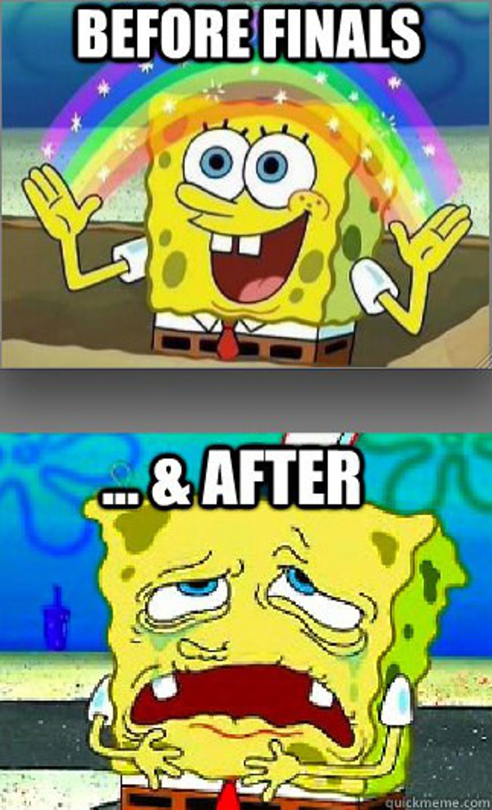 " Spongebob" is something that almost everyone in our generation is familiar with and that we all still reference to this day. Re-watching it as an adult has made me realize how relatable the show can be at times, especially for a crazy college student like myself.