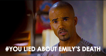 12. When Morgan finds out Hotch and J.J. faked Emily's death