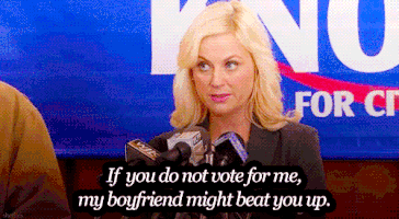 We all know that the citizens of Pawnee really like to stand up for what they believe in, no matter how ridiculous it is. This makes for some sticky politics as Leslie and Ben learn quickly that you can't please everyone. Because of this, they have to defend their spouses stance and decisions making them the perfect team.