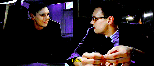 To be honest, I don't really care about the main plot of the episode, which focuses on Oswald Cobblepot's attempts to murder the man who killed his mother. What I'm really into is the subplot revolving around Edward Nygma, a man suffers from a split personality and eventually becomes the Riddler. In the previous episode, Nygma admitted to his girlfriend, Kristen, that he killed her previous boyfriend, Tom, after he (Tom) refused to stop abusing her. Shocked, she called Nygma a psychopath and tried to run away. He grabbed her by the throat in order to stop her from leaving, and accidentally ended up choking her (yes, I know it's not that realistic).