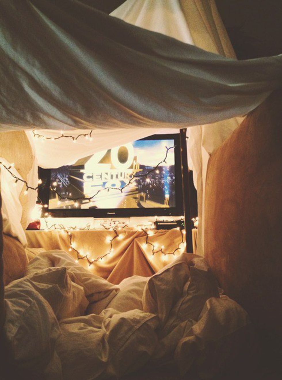 Even though you’re still watching a screen, this is not your typical “in bed, surrounded by loads of food” scene. Get some friends (or family), a couple snacks, some blankets and put on a movie – classic or contemporary!