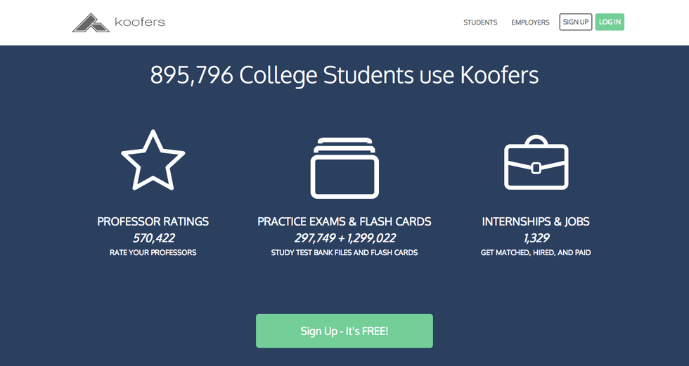 Koofers is a website that like others has everything from practice exams to flash cards, but Koofers doesn't stop there. It is an all in one website that includes professor ratings and everything about your dream job including job interview videos.