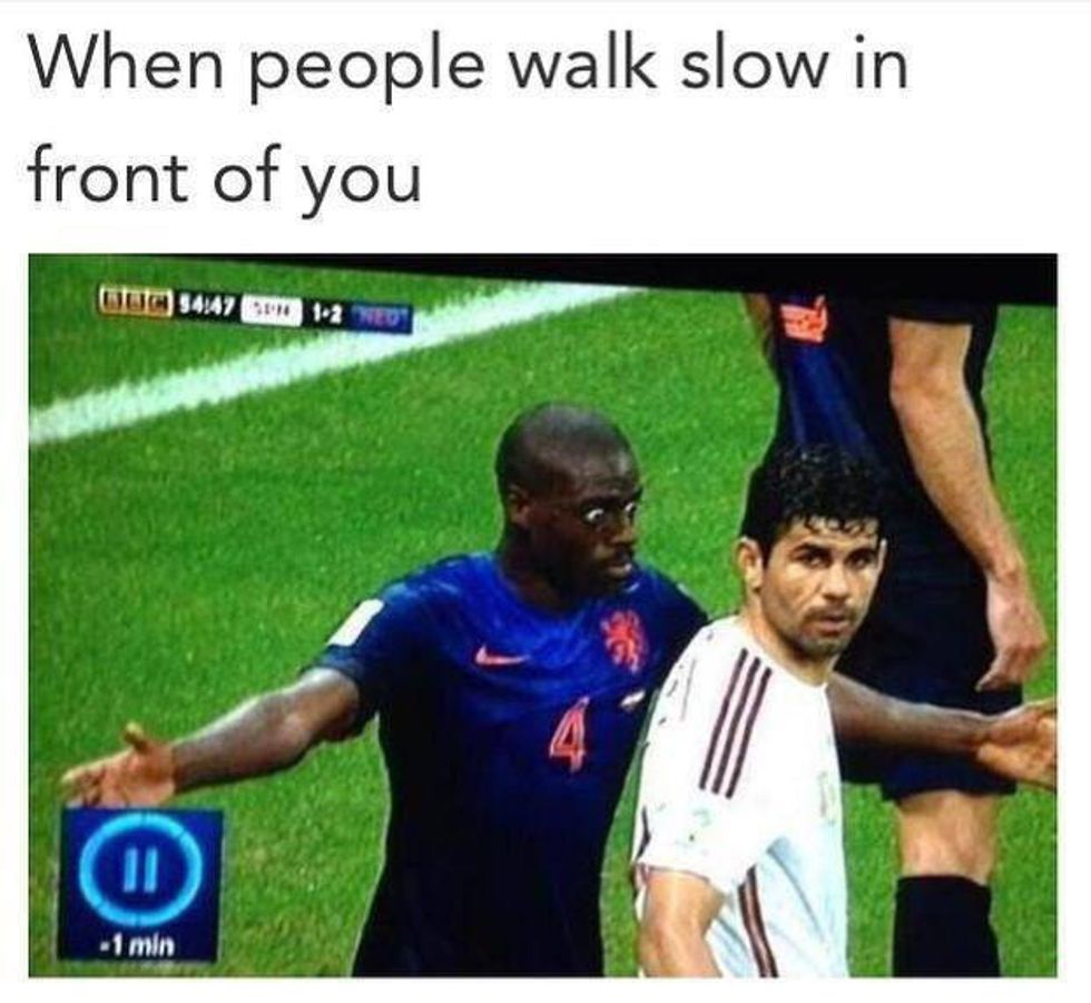 Some of us don't like to walk painfully slow! Move over so the rest of us can proceed at a normal speed.