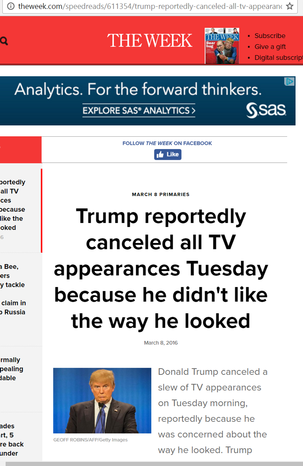 5. Trump cancelled his appearances because he didn't like the way he looked.