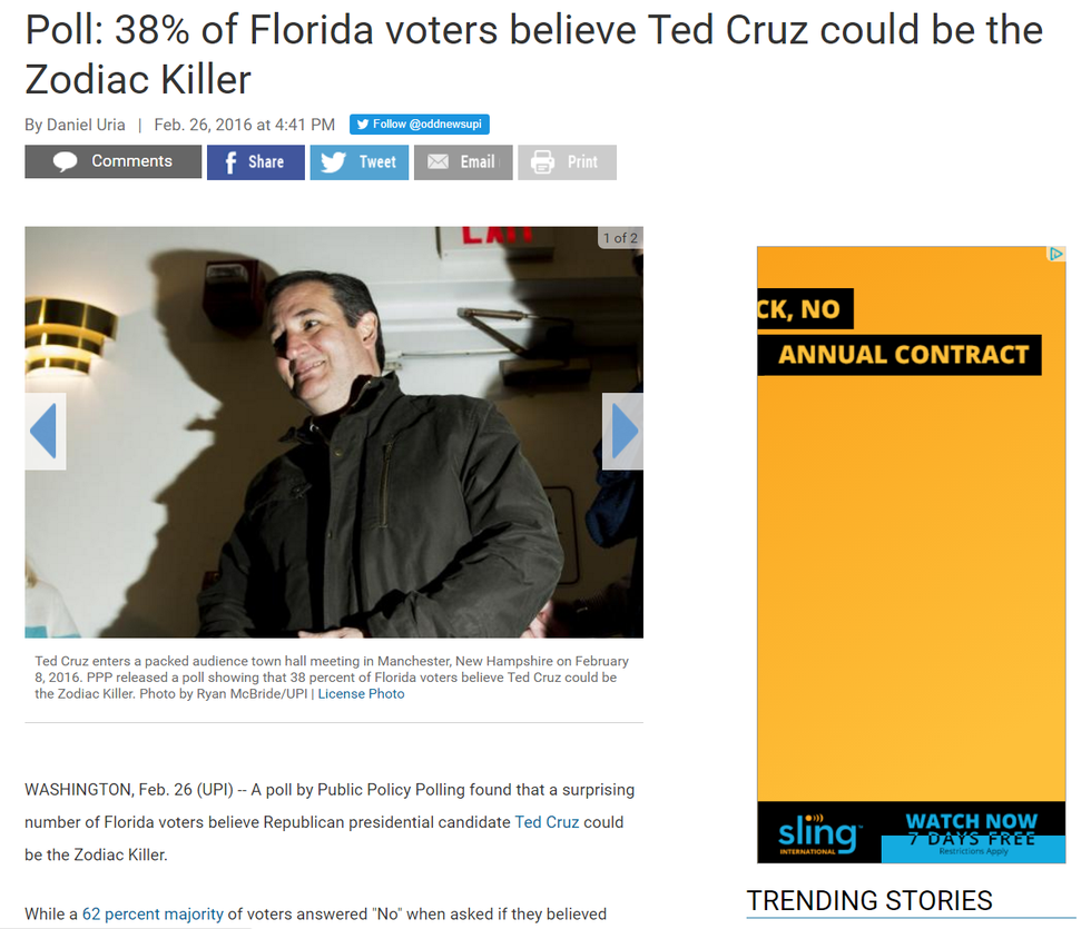 6. Almost half of Florida thought Ted Cruz could be a serial killer.