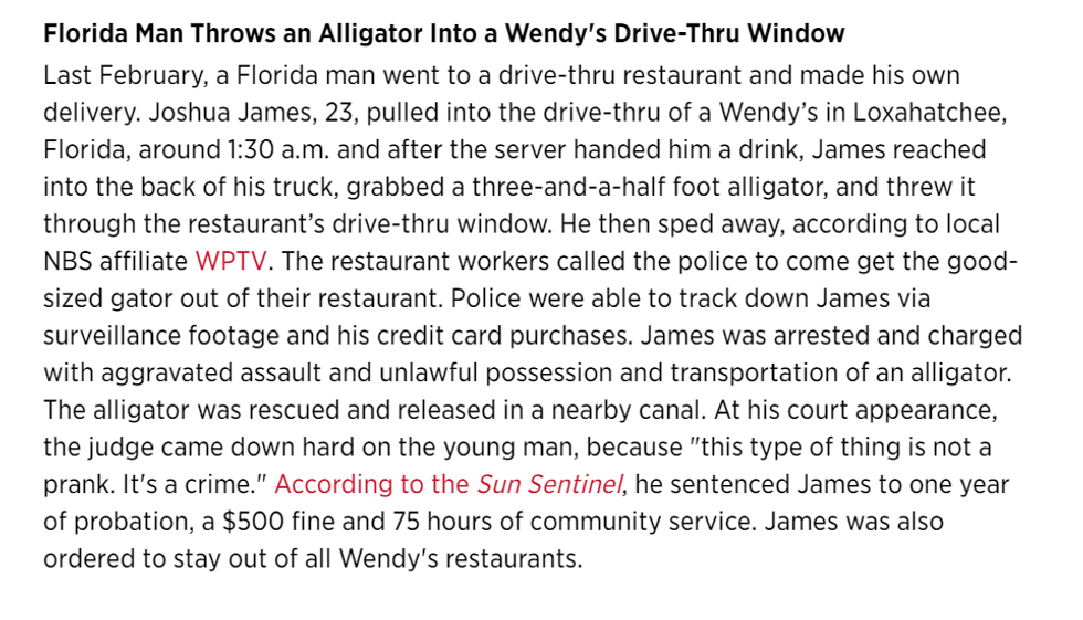 Congratulations, you played yourself.11. Florida Man struck again.