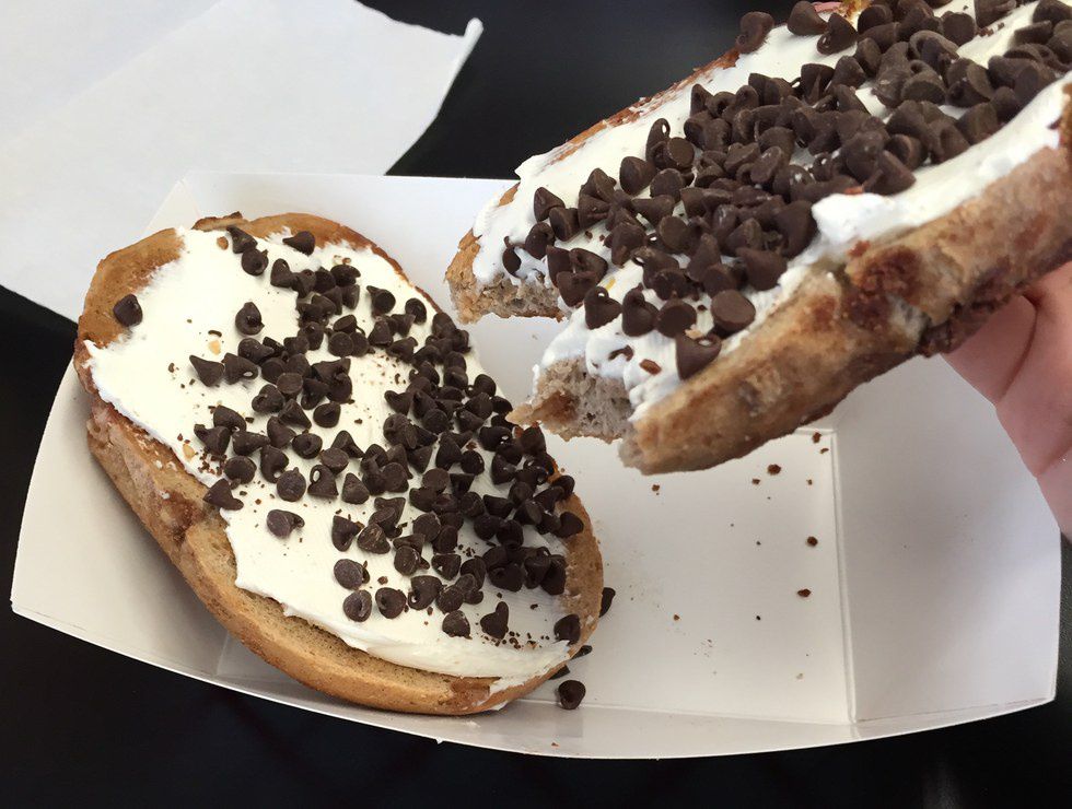 2. French Toast Bagel w/ Chocolate Chip Cream Cheese