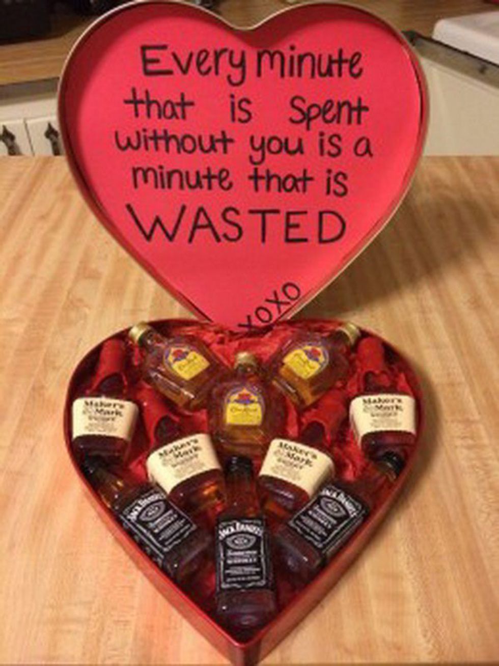 Forget the chocolates and spice up your typical heart shaped box with some of your love's favorite liquors.