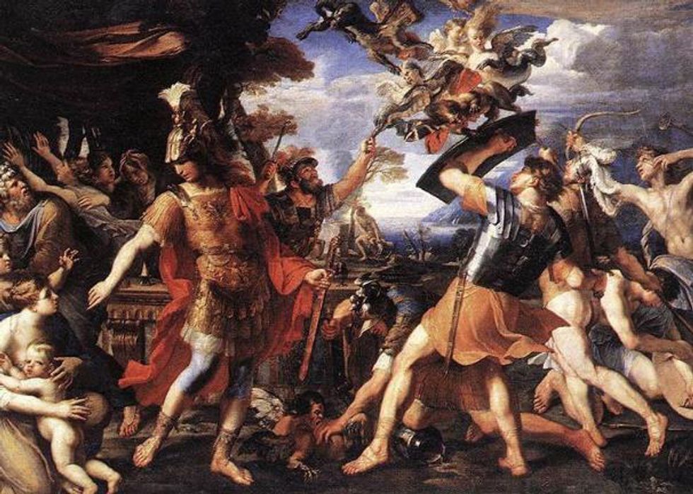 The first Greek myth traced to the Olympics was when Zeus fought and defeated Cronus, in order to win power over the throne. The Olympics were started to honor Zeus and his victory. Although not a main part of religious festivities, the games exemplified physical qualities.